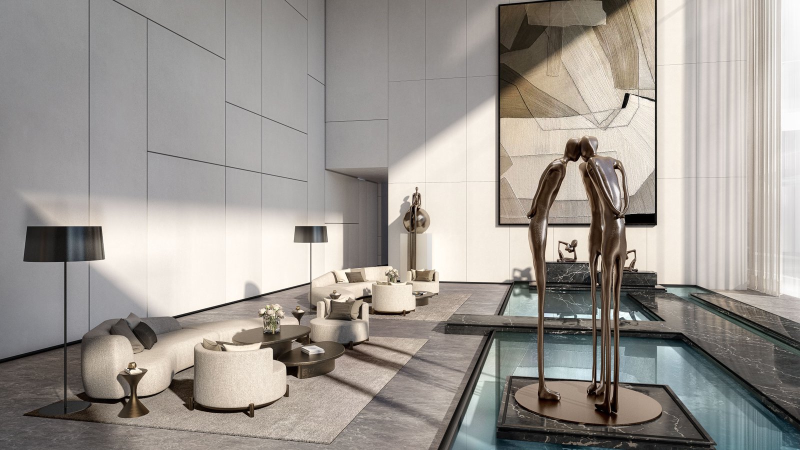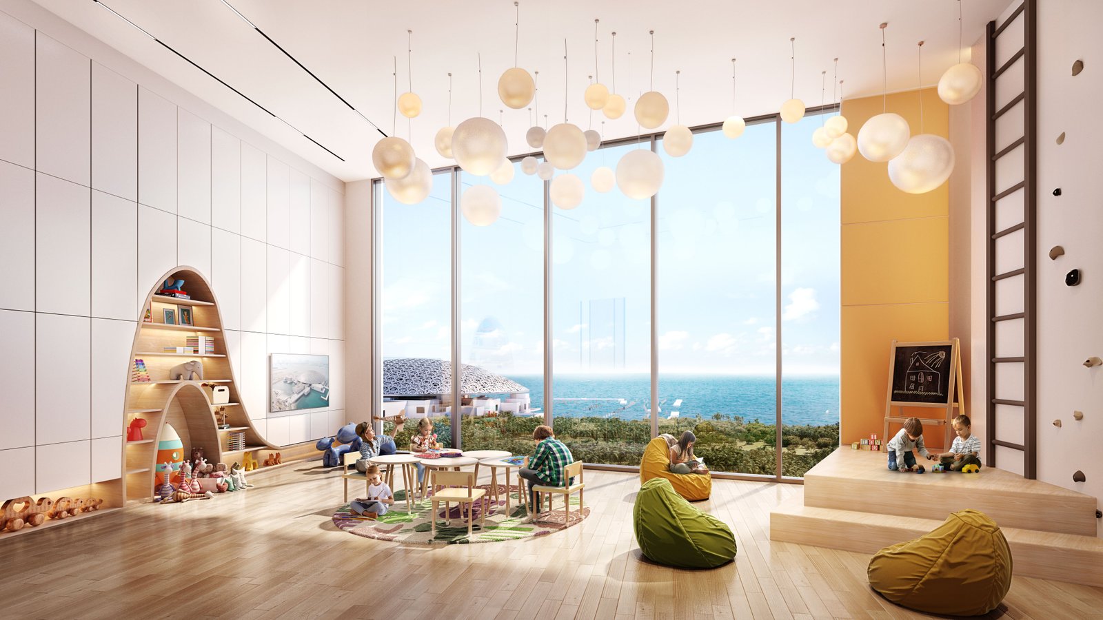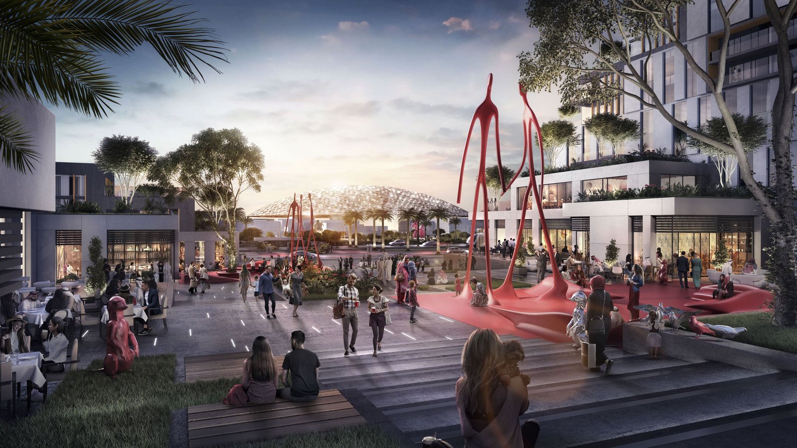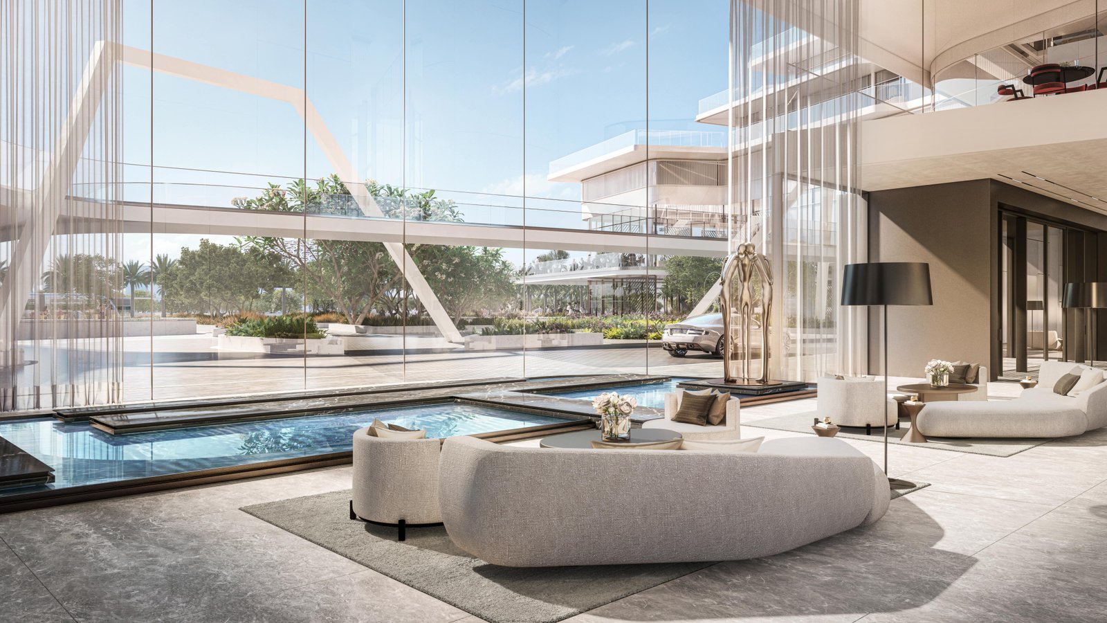 The gallery of Grove Gallery Views on Saadiyat Island in Abu Dhabi showcases the elegance of this luxury residential development through stunning visuals of modern apartment interiors, sophisticated architecture, landscaped courtyards, and premium lifestyle amenities. The images highlight open-plan living spaces, floor-to-ceiling windows, rooftop pools, and vibrant community areas that reflect the project’s artistic design and contemporary living environment within the Saadiyat Grove cultural district.Grove Gallery Views Abu Dhabi – Modern Apartments in Saadiyat Cultural District